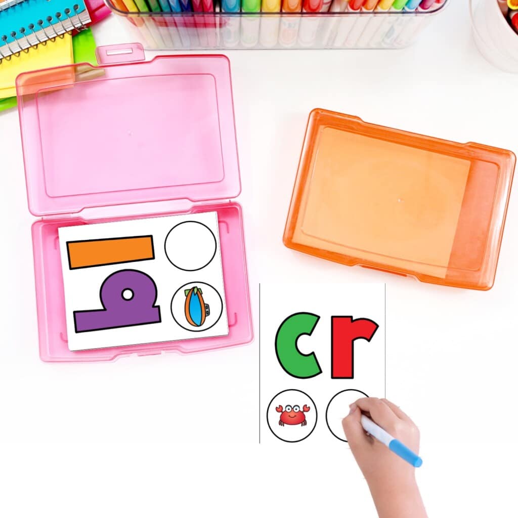 One of my favorite ways to have students independently practice specific phonics skills is to use literacy centers. Students can interact with literacy manipulatives while they build blends, write blends, read blends, and more in centers. There are so many different ways you can have students work with activities for blends.