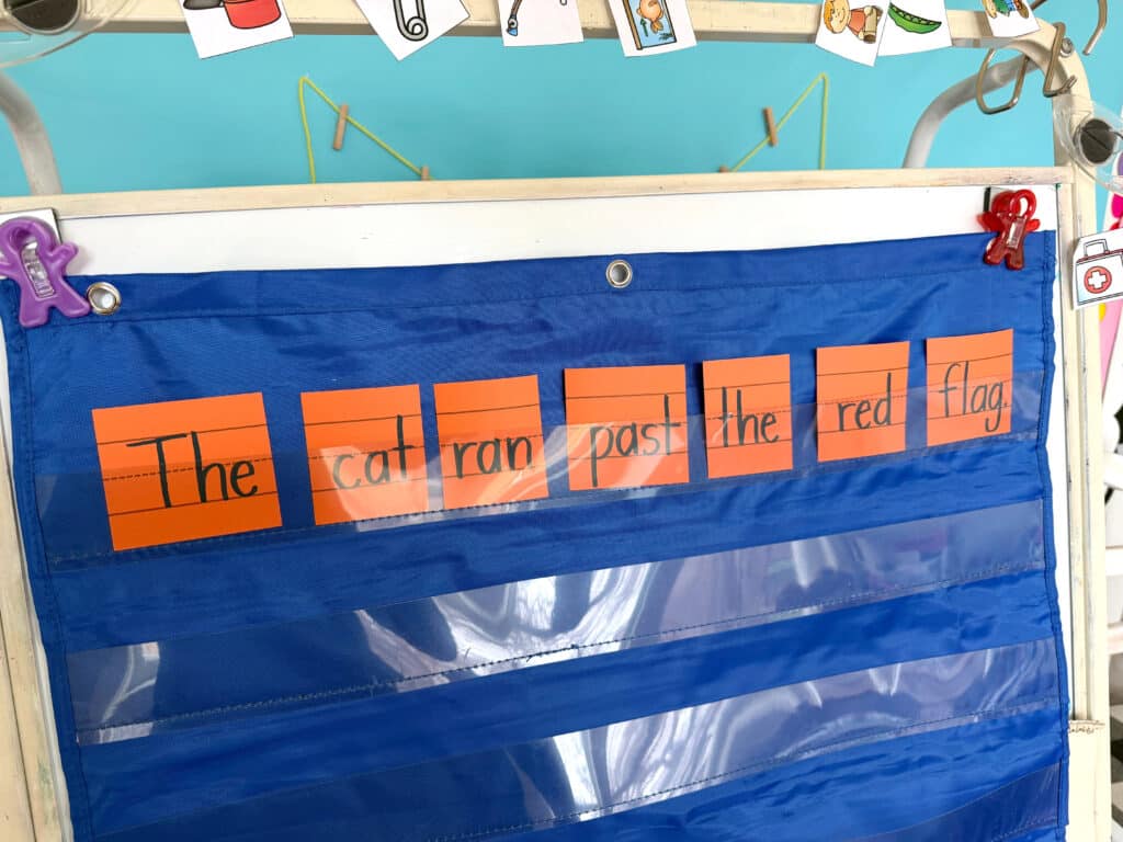 We also must remember that we have to give an explaination in a way they can understand. I like to say, “We use letters to build words. We use those words to build sentences. Then, we use those sentences to make books!” This is a concrete way of explaining it that they can understand. It also builds excitement and gives them a REASON to learn the smaller concepts–like letter sounds.