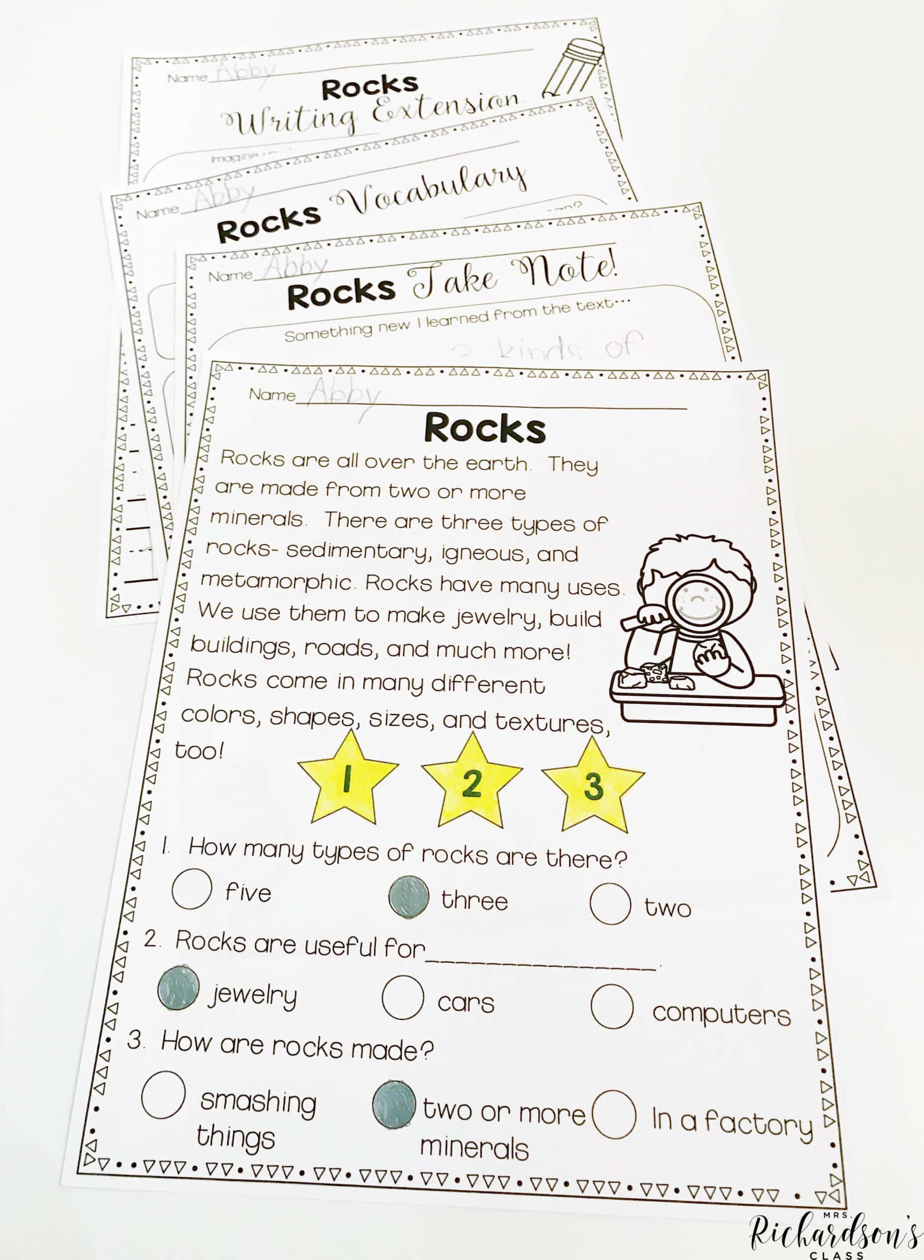 - Rocks and Soil (The water teaching elements will be in the March science bundle.)